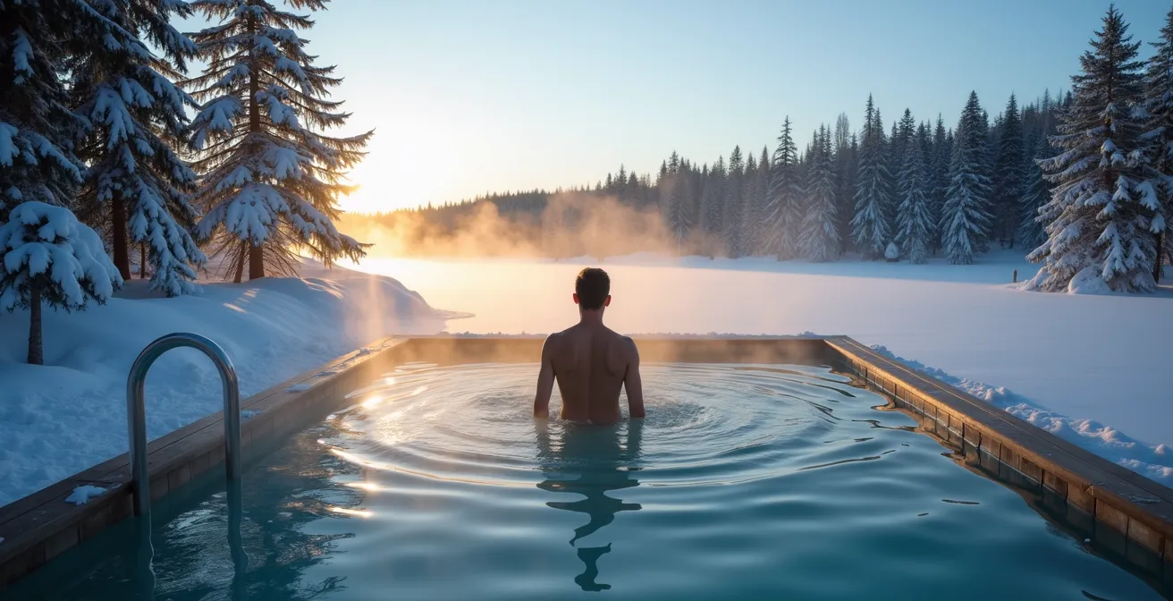 Beaucoup de visiteurs voient le bain froid comme une épreuve facultative, un défi un peu fou réservé aux plus téméraires. C’est une erreur fondamentale. Le passage dans l’eau glacée n’est pas un simple détail, c’est le moteur principal de la cascade hormonale que nous recherchons. Sans ce choc thermique, l’expérience thermale perd une grande partie de son efficacité sur le système immunitaire. C’est dans ce bref instant d’inconfort que la magie opère réellement, bien au-delà de la simple relaxation.