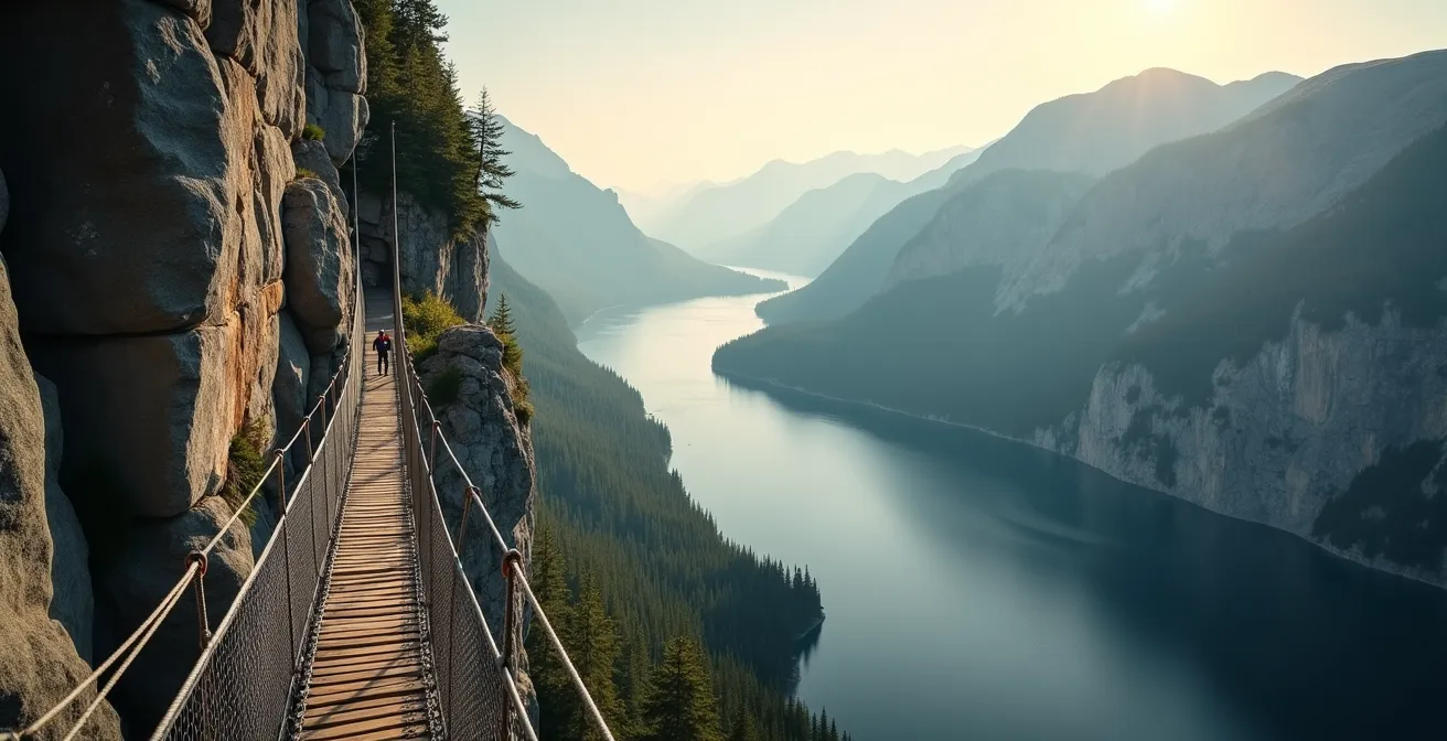 La clé pour vaincre votre peur du vide en via ferrata n’est pas de l’ignorer, mais d’apprendre à la gérer avec des techniques de concentration et un choix de parcours stratégique.